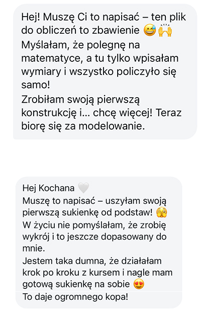 Moje kursantki zaczynają od jednej sukienki… a kończą tworząc własne marki, szyjąc dla siebie lub bliskich, z dumą i spokojem. Zobacz, jak wygląda ich droga.