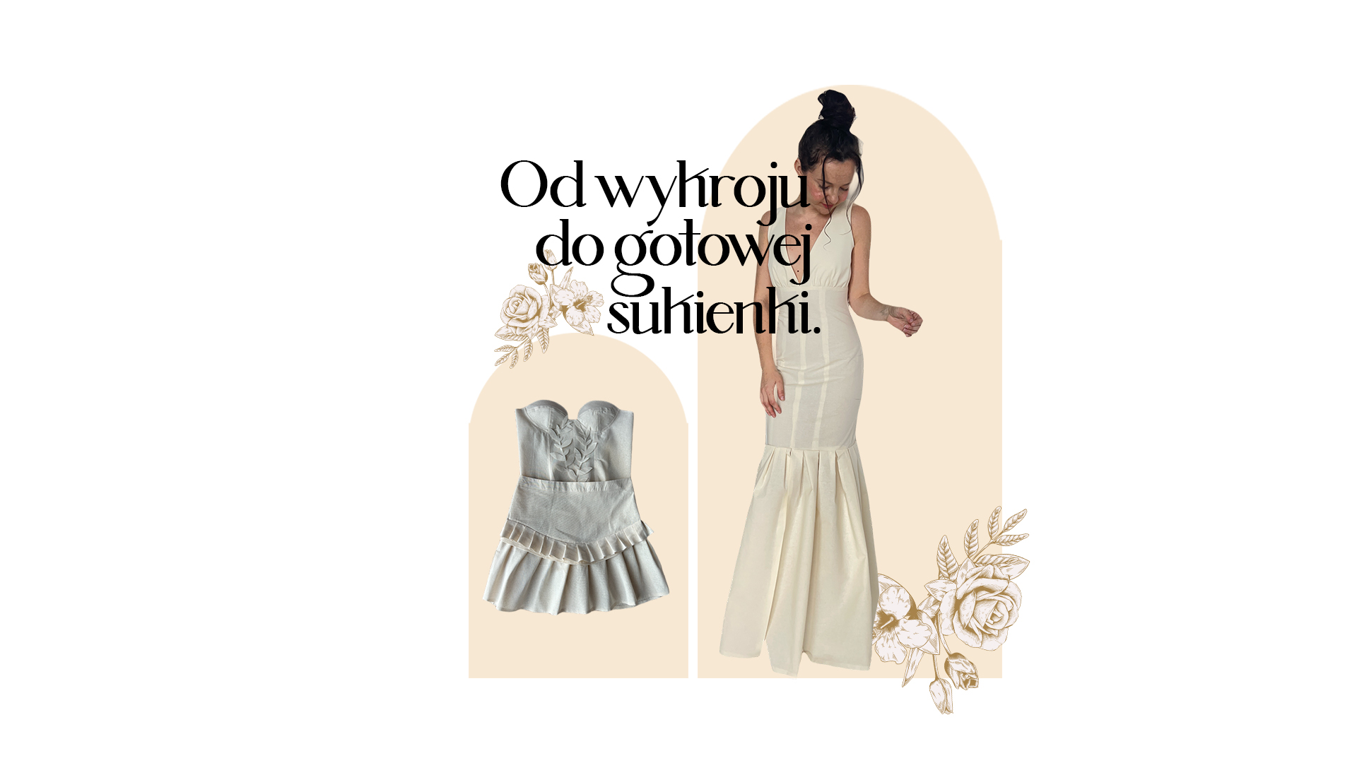 Kurs, w którym krok po kroku stworzysz aż 2 modele sukienek — od wykroju, przez modelowanie, aż po szycie.